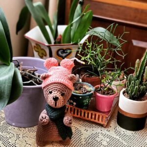 Uma advogada que ganhou a ação pros amigurumis. Minha mãe sempre fez croche, mas nunca me preocupei em aprender. Sabia o básico, mas somente uns 5 anos atrás pedi orientação. Mas logo ela faleceu. Comecei a fazer um pouco de tudo, inicialmente em fio de malha. Comecei a fazer bolsas em fio nautico, fiz ate um curso e aprendi bastante coisa. Conheci o amigurumi e resolvi que era isso. No começo, pelo youtube, receitas trocadas. Mas depois que conheci Luana, há cerca de 2 anos, tudo mudou. Este ano virei Fiota após aprender com o IPA e me apaixonar pelo Tutu.