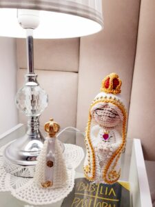 Olá, aqui é a Alê de Oliveira. Seja bem vindo ao Evangelizar com a arte! Amigurumis que encantam e expressam a fé. Trabalho com santinhas e santinhos de crochê, únicos e exclusivos especialmente para você. Trabalho 100% artesanal, feito a mão e materiais de alta qualidade. Trabalho com encomendas e pronta entrega. Será um prazer atender você! Instagram: @evangelizarcomaarte